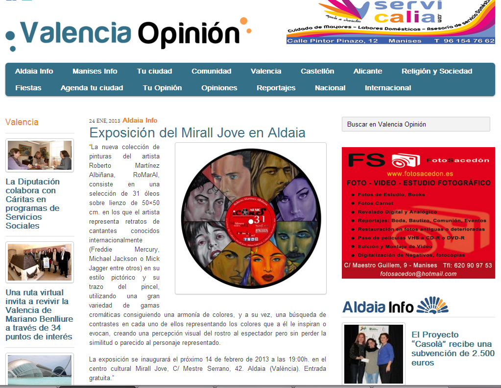 – CAJA MADRID: «25/04/2007 – 20:00:00 Últimos días para descubrir la muestra «Aquellos maravillosos años». Radio City Valencia descubre al público la obra de Roberto Martínez Albiñana, más conocido como Romaral. Durante el mes de abril, la sala acoge la exposición «Aquellos maravillosos años», compuesta por obras realizadas con pintura acrílica que recuerdan al pop art y rescatan los personajes televisivos de los años ochenta. Dirección: Santa Teresa, 19. Teléfono: 96 391 41 51. Internet: www.radiocityvalencia.com. Más información: romaral.blogspot.com. «