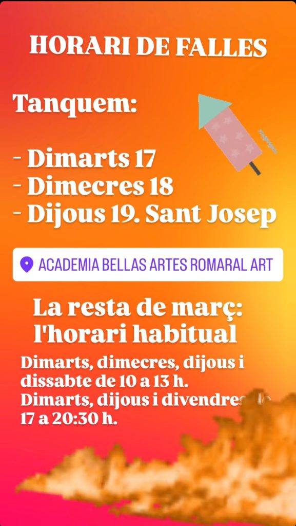 L’acadèmia RoMarAl ART vos desitja BON NADAL I FELIÇ ANY NOU 2021! ? Horari de Nadal?❌Tanquem: Vesprades de 24 i 31 de […]