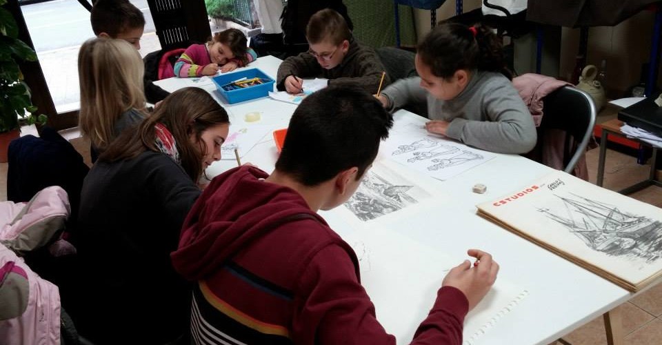 Primer día de jornadas abiertas en la Academia Bellas Artes Romaralart donde los niños han podido pintar sus postales y dibujos navideños durante toda la mañana.